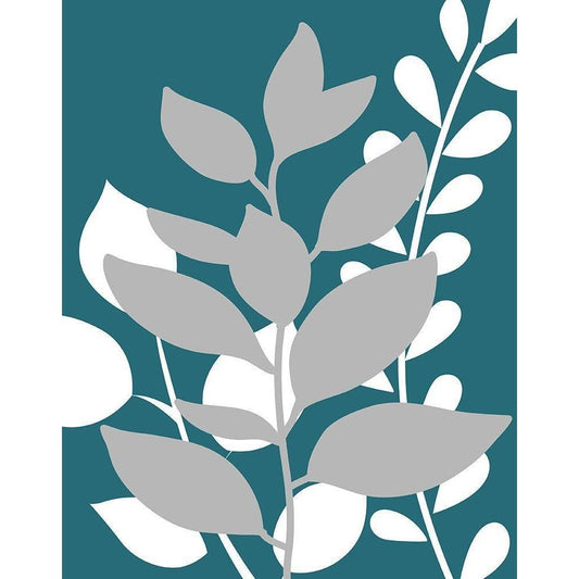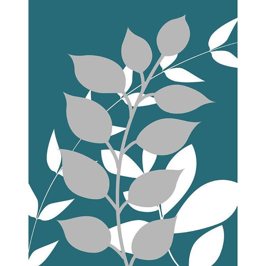 Teal Foliage II Gold Ornate Wood Framed Art Print with Double Matting by Robinson, Tamara
