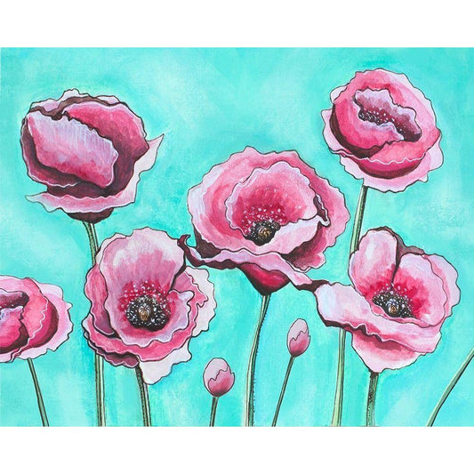 Pink Poppies I Gold Ornate Wood Framed Art Print with Double Matting by Tyndall, Elizabeth