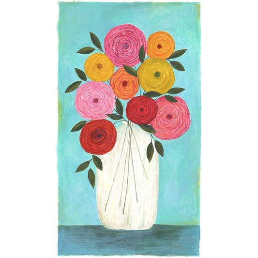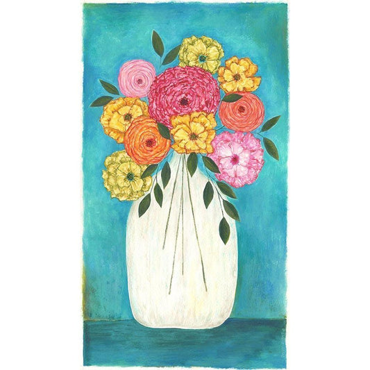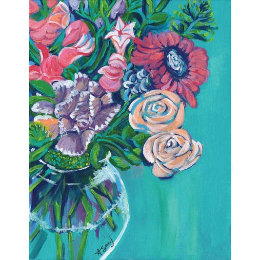 Bright Flowers - Teal Background I Gold Ornate Wood Framed Art Print with Double Matting by Shamp, Cindy