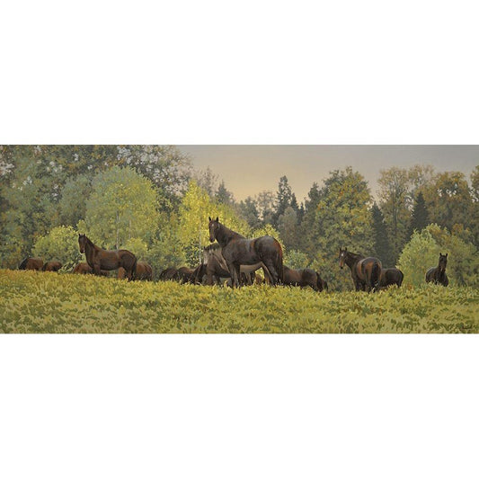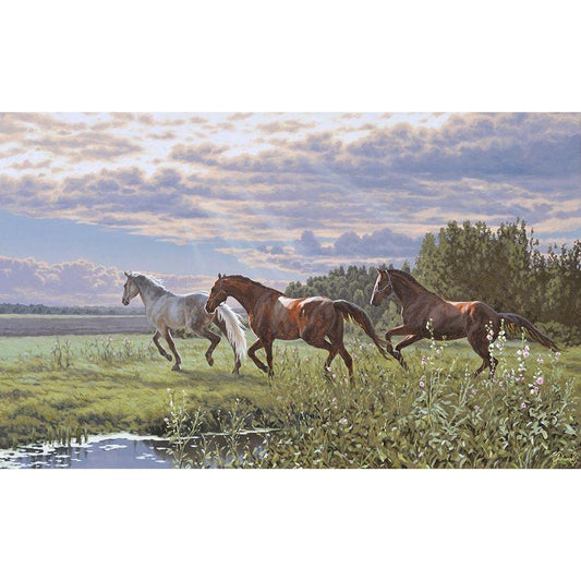 Three Running Horses Gold Ornate Wood Framed Art Print with Double Matting by Adamov, Alexey
