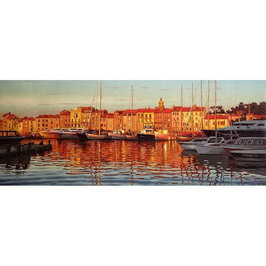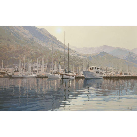 Sleeping Yachts Gold Ornate Wood Framed Art Print with Double Matting by Adamov, Alexey
