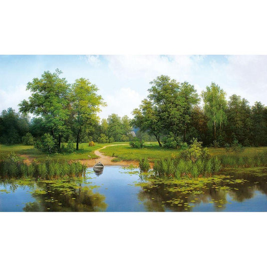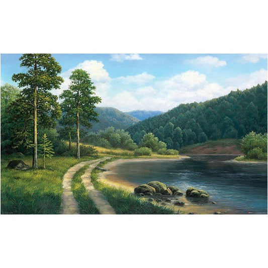 Way by the River Gold Ornate Wood Framed Art Print with Double Matting by Babicev, Vjaceslav