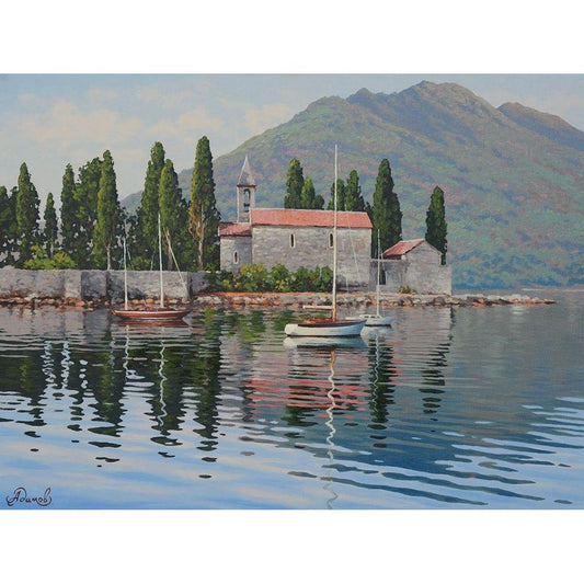 Kotor Bay II Gold Ornate Wood Framed Art Print with Double Matting by Adamov, Alexey