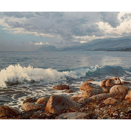 Sea, Etude of Stones Gold Ornate Wood Framed Art Print with Double Matting by Adamov, Alexey