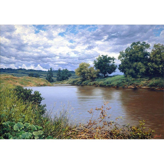 The Lake Gold Ornate Wood Framed Art Print with Double Matting by Adamov, Alexey