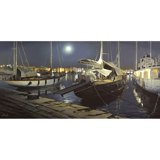 A Night Port Gold Ornate Wood Framed Art Print with Double Matting by Adamov, Alexey
