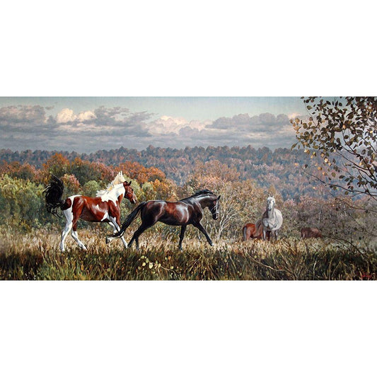 Horses in the Fog Gold Ornate Wood Framed Art Print with Double Matting by Adamov, Alexey