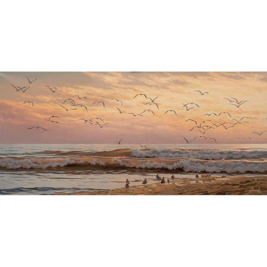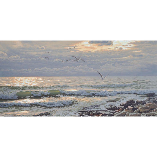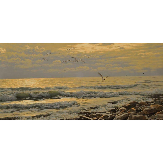 Seagulls Gold Ornate Wood Framed Art Print with Double Matting by Adamov, Alexey
