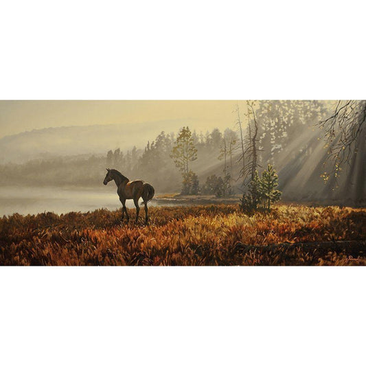 Landscape with a Horse Gold Ornate Wood Framed Art Print with Double Matting by Adamov, Alexey