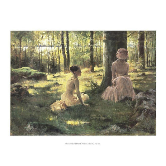 Under the Birches Gold Ornate Wood Framed Art Print with Double Matting by Edelfelt, Albert
