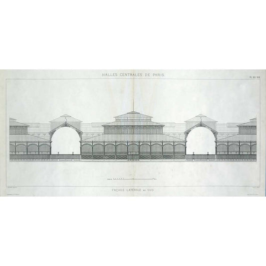 Les Halles, Paris, South Facade Gold Ornate Wood Framed Art Print with Double Matting by Baltard, Victor