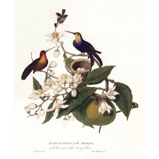 Humming Birds Gold Ornate Wood Framed Art Print with Double Matting by Hooker, William