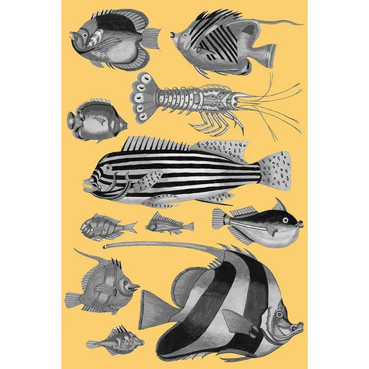 Tropical Fish Collage 4-Yellow Background Gold Ornate Wood Framed Art Print with Double Matting by Renard, Louis