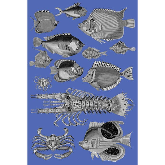 Tropical Fish Collage 4-Blue Background Gold Ornate Wood Framed Art Print with Double Matting by Renard, Louis