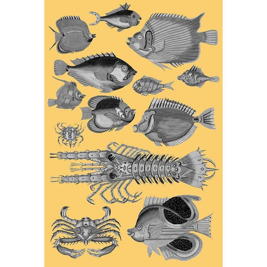 Tropical Fish Collage 1-Yellow Background Gold Ornate Wood Framed Art Print with Double Matting by Renard, Louis
