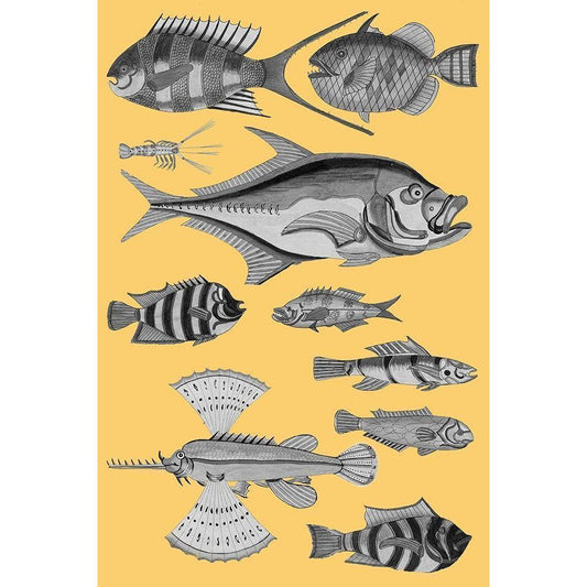 Tropical Fish Collage 2-Yellow Background Gold Ornate Wood Framed Art Print with Double Matting by Renard, Louis
