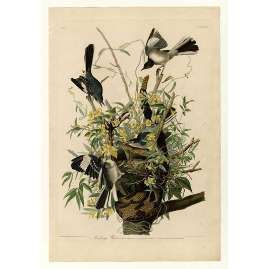 Mocking Bird Gold Ornate Wood Framed Art Print with Double Matting by Audubon, John James