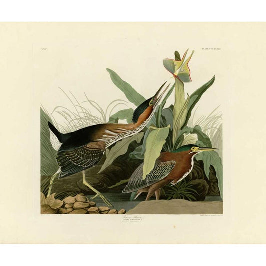 Green Heron Gold Ornate Wood Framed Art Print with Double Matting by Audubon, John James