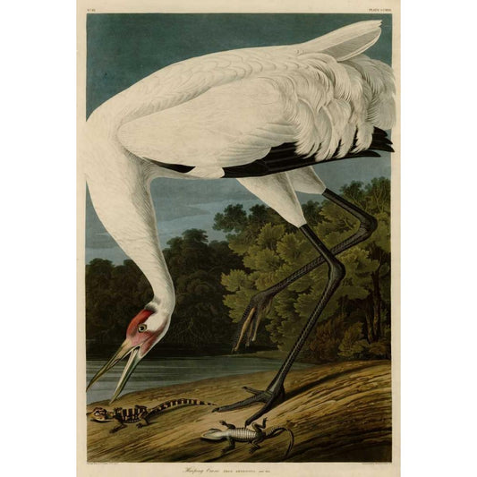 Hooping Crane Gold Ornate Wood Framed Art Print with Double Matting by Audubon, John James