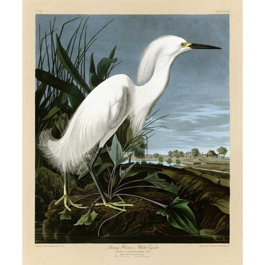 Snowy Heron or White Egret Gold Ornate Wood Framed Art Print with Double Matting by Audubon, John James