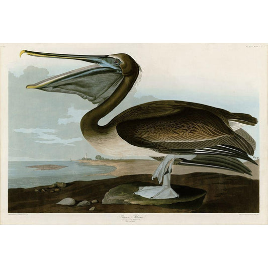 Brown Pelican Gold Ornate Wood Framed Art Print with Double Matting by Audubon, John James