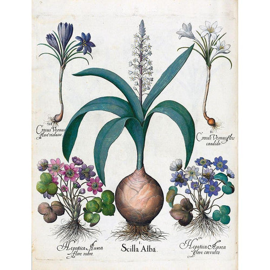 Crocus, Alba and Hepatica Gold Ornate Wood Framed Art Print with Double Matting by Besler, Basilius