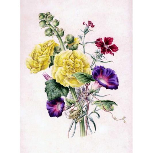 Hollyhocks Gold Ornate Wood Framed Art Print with Double Matting by Andrews, James