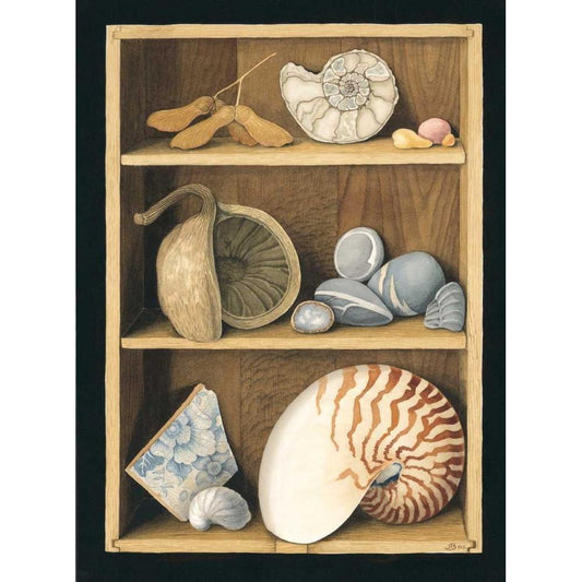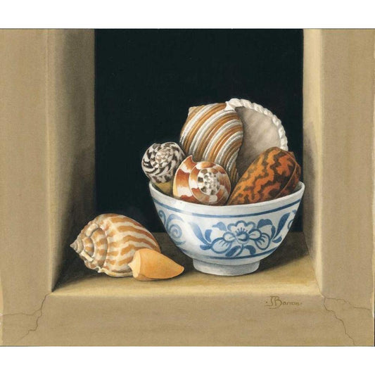 Shells on Shelves Gold Ornate Wood Framed Art Print with Double Matting by Baron, Jenny
