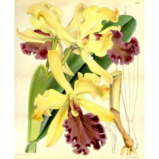 Orchid, Cattleya Dowiana Gold Ornate Wood Framed Art Print with Double Matting by Curtis, William