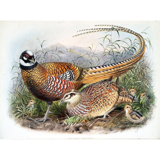 Amherst Pheasant Gold Ornate Wood Framed Art Print with Double Matting by Elliot, David