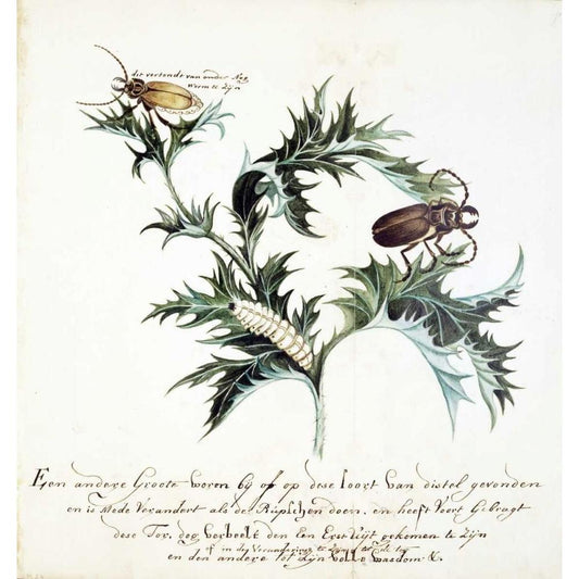 Thistle with Beetles Gold Ornate Wood Framed Art Print with Double Matting by Markee, Cornelis