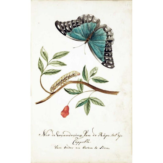 Plant With Leaves, Caterpillar, Butterfly Gold Ornate Wood Framed Art Print with Double Matting by Markee, Cornelis