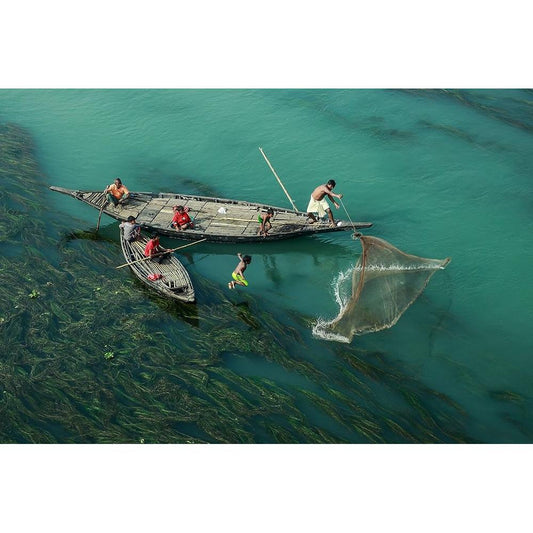 Fishing In The Algae RIVer Gold Ornate Wood Framed Art Print with Double Matting by Amdad Hossain, Muhammad