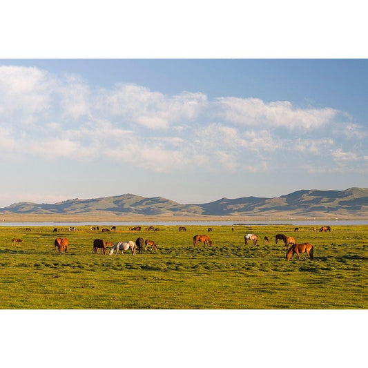 Horses on their mountain pasture at lake Song Kol Gold Ornate Wood Framed Art Print with Double Matting by Zwick, Martin