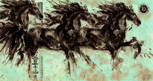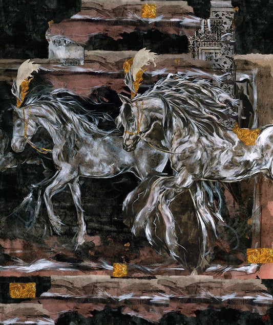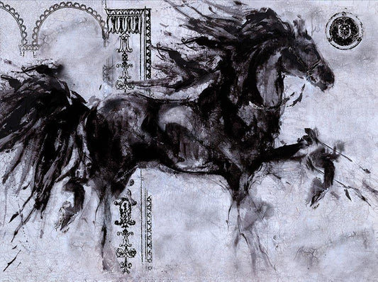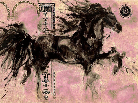Horse Print Silkscreen White Modern Wood Framed Art Print with Double Matting by Wiley, Marta