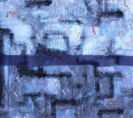 Blue Oversized Abstract Dark White Modern Wood Framed Art Print with Double Matting by Wiley, Marta