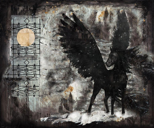 Black Pegasus White Modern Wood Framed Art Print with Double Matting by Wiley, Marta