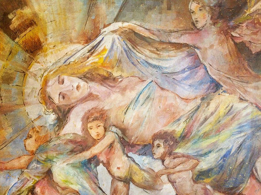 Virgin Mary Burgandy White Modern Wood Framed Art Print with Double Matting by Wiley, Marta