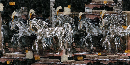 Horse Square Format Blue White Modern Wood Framed Art Print with Double Matting by Wiley, Marta