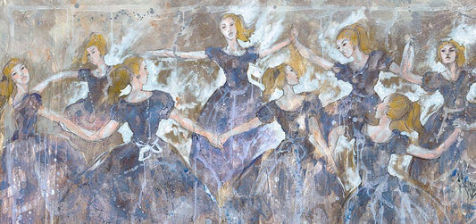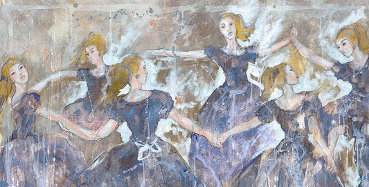 Dancers In Blue White Modern Wood Framed Art Print with Double Matting by Wiley, Marta