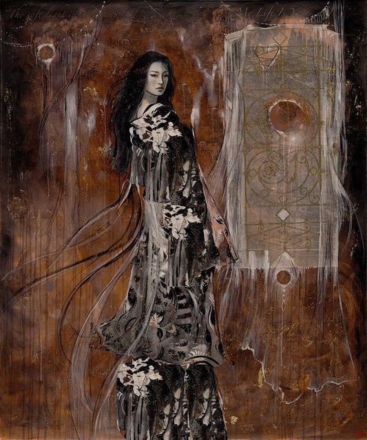 Sepia Geisha White Modern Wood Framed Art Print with Double Matting by Wiley, Marta