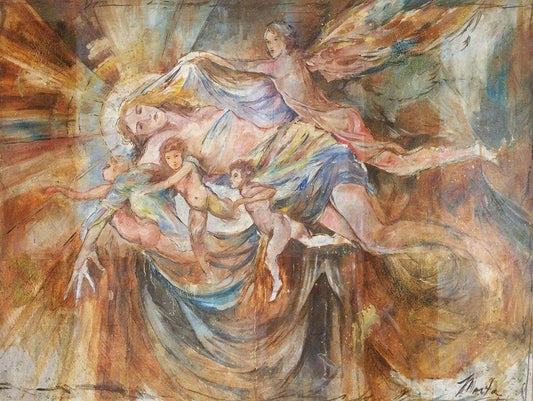 Virgin Mary Pink and Purple White Modern Wood Framed Art Print with Double Matting by Wiley, Marta