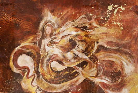 Dragon and The Pearl White Modern Wood Framed Art Print with Double Matting by Wiley, Marta