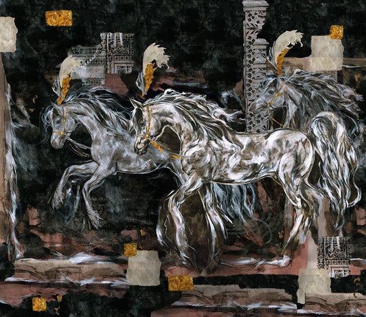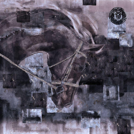 Horse Blue Tint White Modern Wood Framed Art Print with Double Matting by Wiley, Marta