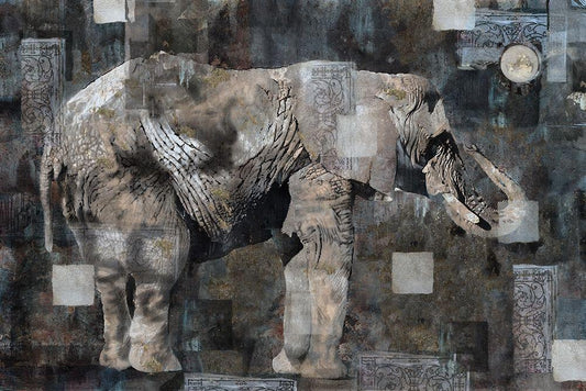 Elephant Collage Dark White Modern Wood Framed Art Print with Double Matting by Wiley, Marta