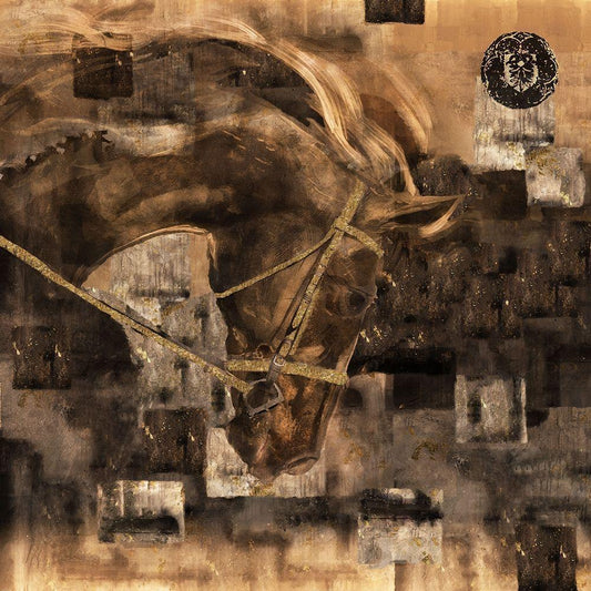 Horse and Silver Foil White Modern Wood Framed Art Print with Double Matting by Wiley, Marta