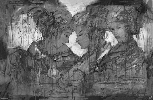 golden Flute Players White Modern Wood Framed Art Print with Double Matting by Wiley, Marta