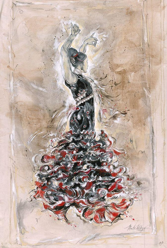 Flamenco On Linen White Modern Wood Framed Art Print with Double Matting by Wiley, Marta