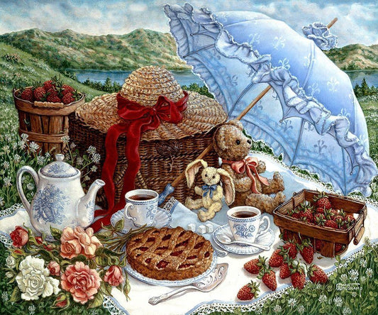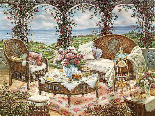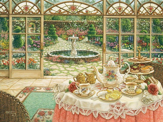 Afternoon Tea White Modern Wood Framed Art Print with Double Matting by Kruskamp, Janet