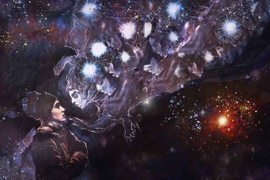 Demon And The Unicorn II White Modern Wood Framed Art Print with Double Matting by Wiley, Marta